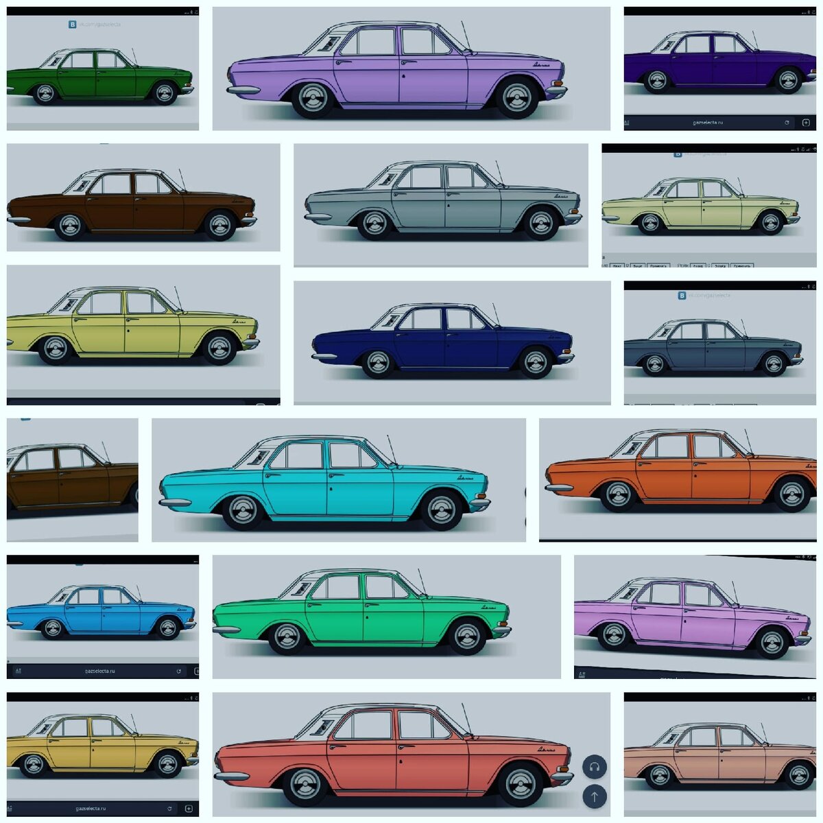 Выбор цвета это ответственное занятие. Есть цвета которые "идут" только современным автомобилям с более обтекаемыми и плавными формами. Есть цвета, которые заезженные и у всех волги таких цветов, а мы же хотим выделится. Есть цвета просто неподходящие, например(на мой взгляд) ярко красный волге не идет - ну не нравится мне - тем более, что красная машина у меня была уже.