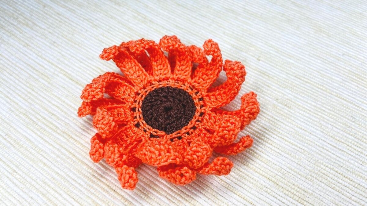 Вязаный крючком цветок календулы. Мастер-класс с фото.
