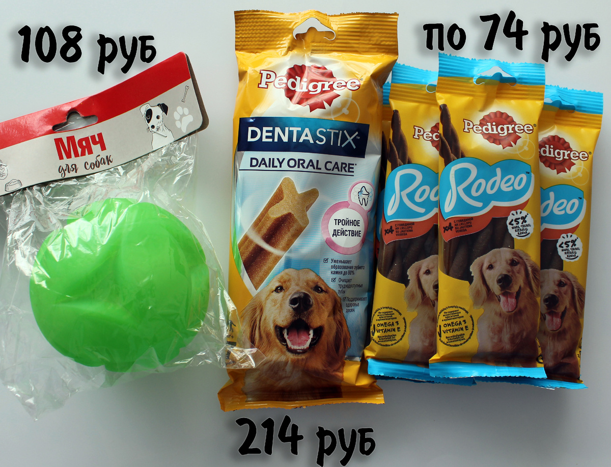 Всем привет! 👋 Вот за что я не люблю офф-лайн магазины, так это "сюрпризы" на кассе! С интернет-магазинами проще: в корзину накидал, сразу видно сумму заказа. Если очень много, то можно что-то удалить. А вчера я ходила по Магниту, ходила, и вроде бы брала самое нужное, и вроде даже цены считала, а на кассе меня чуть "Кондратий не хватил!" Но я себя сразу успокоила, что это закупка на два месяца. В мае мы в Магнит Косметик не попадем, потому что 15 число выпадает на воскресенье (ходим мы туда только 15-го на скидки). А в воскресенье нас из дома не выманишь! Слишком много дел, чтобы еще выходной на магазины тратить... Ближе к делу! Сегодня всё сфотографировала, всё разобрала, расставила по местам хранения. Так и реально всё нужное, ничего лишнего не взяла! 😉 Собаке: Мячик пищащий и лакомства: DentaStix - 1 пачка, Rodeo - 5 пачек. Ватно-бумажное: Туалетная бумага, салфетки, средства женской гигиены. Ассортимент большой, всё вернулось на полки в магазин, но по сильно возросшим ценам. Чис