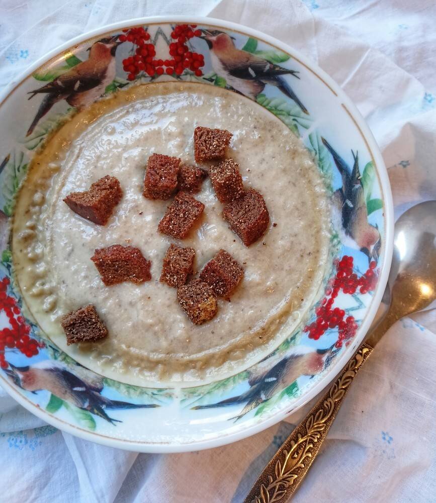 Ароматный и такой вкусный суп.. всем любителям сливочных и нежных супов советую к приготовлению 😋 #суп #пп #обед #меню #зож #рекомендую #советую #блюдосгрибами #грибы Ингредиенты: Шампиньоны свежие , Картофель (большие), Лук репчатый (средний), Сливки 10% , Вода , Соль , Перец молотый (люблю по острее), Растительное масло , Гренки:, Хлеб бородинский , Чеснок сушёный молотый Способ приготовления: Берём грибы. Моем их и мелко нарезаем. Кладём их в кастрюлю. Берём лук, очищаем его, моем и также мелко нарезаем. Добавляем в кастрюлю к грибам. Добавляем растительное масло и начинаем пассеровать грибы с луком до мягкости лука и кварки грибов. Пока готовятся грибы очищаем и нарезаем мелко картофель. В процессе добавляем воду, варим около 5 минут и добавляем туда картофель. Варим до мягкости картофеля. Берём сливки, отмеряем нужное количество и выливаем в суп. Варим минут 10, в это время сделаем гренки. Берём хлеб, нарезаем его и отправляем на горячую сковороду. Обжариваем несколько минут без