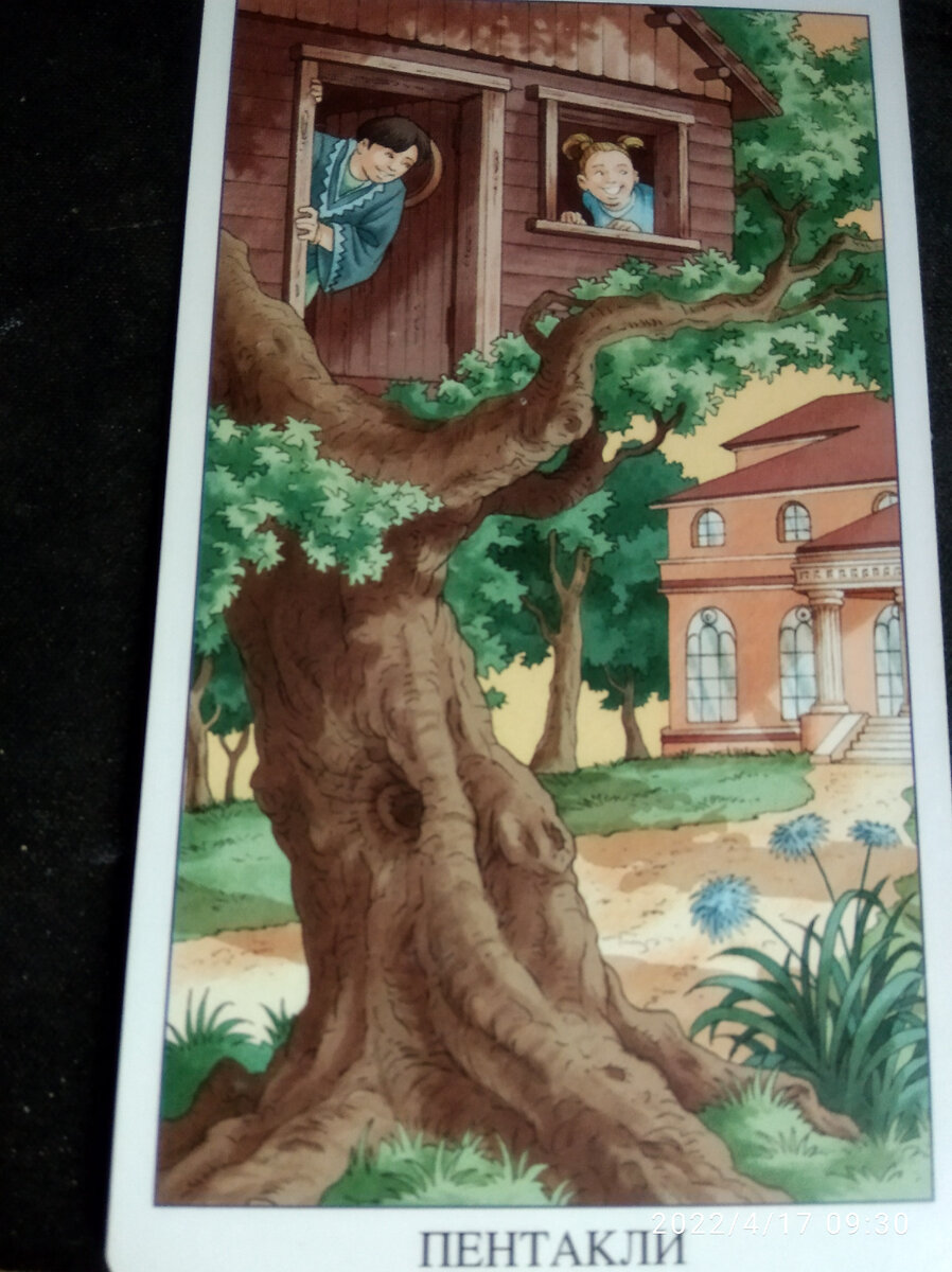 Сегодня выпала карта 10 Пентаклей, на карте видны дети играющие в домики на дереве, а рядом стоит дом в котором они живут с родителями. Сегодня речь пойдёт о вашем материальном благополучии и о вашем семейном счастье, вижу что в данный момент вашей семье нечего не угрожает. Возможно что ваше финансовое положение значительно улучшиться и вы сможете спокойно провести время в кругу семьи или побыть вместе с детьми на логе природы. Вероятно что сегодня можно будет заняться домашними хлопотами или решением бытовых проблем. Может быть вам просто необходимо поехать в гости к вашим дальним родственникам и провести у них выходные. Вижу что найдете счастье лишь в кругу семьи и нигде не будет на стороне.