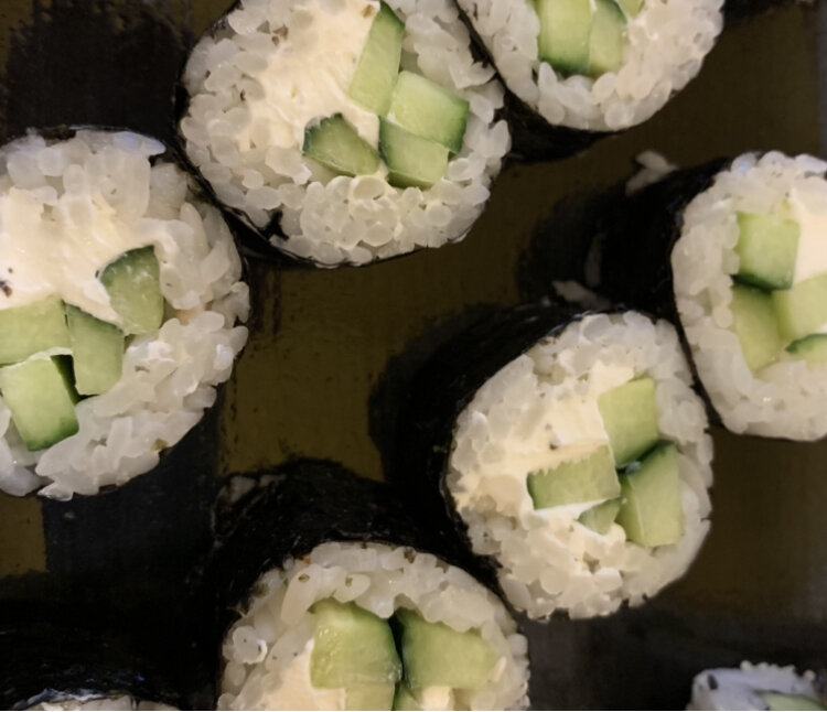 ☘️ С низким гликемическим индексом (ГИ). Такие суши должны содержать сырые овощи. Дело в том, что белый рис имеет ГИ в пределах 60-70, а ГИ огурца - 10. Сочетание белого риса и огурца даёт нам средний гликемический индекс - 35 (60+10/2). Еда с ГИ до 50 считается «полезной» для фигуры.