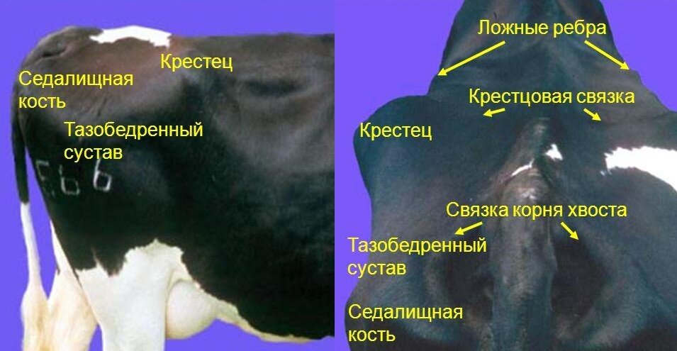 Расслабляются связки.. Для меня это самый верный признак,но...сначала я не могла понять где искать эту связку) потом, (как и с выменем) понять на сколько же она должна расслабиться??! и только к третьему отелу пришло полное понимание что и где искать... Ищем?) смотрим на корову сзади, видим хвост: находим место откуда он начинается....не не, не с низу))) начало хвоста сверху, он из коровы растет)) Справа и слева от хвоста есть такие выпирающие костяшки - седалищные бугры. Так вот связки находятся от хвоста до бугра с обоих сторон! Задолго до отела, или у не стельной коровы их особо не нащупать. Между хвостом и бугром как бы плотная площадка, но чем ближе к отелу, это место становиться мягче, как бы проваливается и раздвигается. Время идёт, и вот уже между хвостом и бугром помещается ладонь (размещаем вдоль хвоста). Но когда вы кладете ладонь, на самом краю чувствуете как бы верёвочку, связывающую злосчастный хвост с таким же злосчастным бугром)) Почему злосчастным? да потому что,