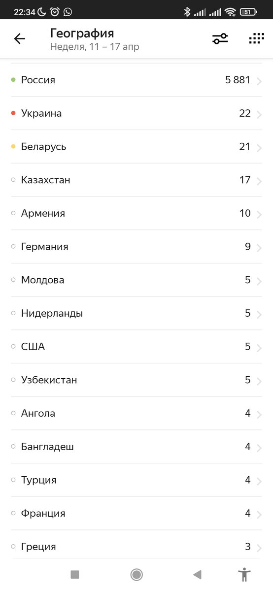 Как сказал наш Верховный главнокомандующий, изоленты не хватит. Я тут посмотрел географию аудитории в Zене за последнюю неделю. 34 государства, в том числе и вражеские, и неопределившиеся.