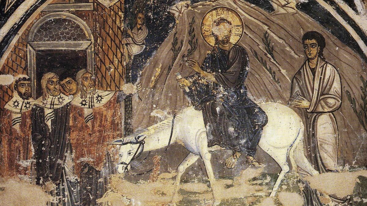Ликуй от радости, дщерь Сиона, торжествуй, дщерь Иерусалима: се Царь твой грядет к тебе, праведный и спасающий, кроткий, сидящий на ослице и на молодом осле, сыне подъяремной .