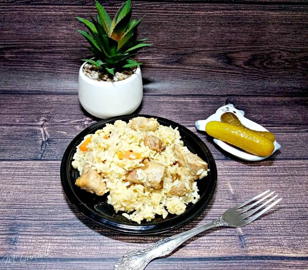 Вкуснейший, ароматный, из простых продуктов, на ужин! Классический плов со свининой точно понравится тем, кто любит восточную кухню, но по каким-то причинам не ест баранину. Готовится он в казане на плите, набор продуктов самый обычный, а процесс приготовления простой и понятный. Ингредиенты: - свинина, - рис, - лук репчатый (крупный), - морковь, - барбарис, – соль, приправа для плова, – растительное масло Способ приготовления: Рис можете выбрать любой, на свой вкус. У меня он обычный, круглый. Промойте его в нескольких водах, лишнюю жидкость слейте. Разогрейте казан на сильном огне, добавьте растительное масло. Нарежьте свинину на кусочки нужного вам размера. Репчатый лук нарежьте полукольцами. Морковь нарежьте крупными брусочками. Переложите в казан, нарезанный репчатый лук и обжарьте его на среднем огне в течение 4-5 минут, помешивая. Добавьте к луку морковь. Перемешайте. Обжарьте овощи вместе около 7-10 минут. Добавьте к овощам свинину, перемешайте и жарьте всю массу еще примерно 1