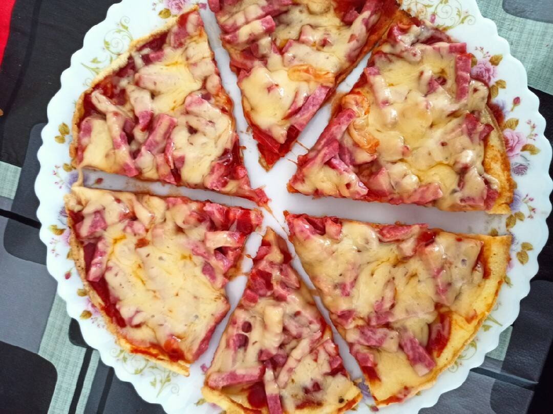 #быстро #вкусно #просто #омлет #пицца Ингредиенты: яйца, колбасы , Кетчуп, Сыр, Растительное масло Способ приготовления: 2 яйца взбиваем, солим, перчим. На разогретой сковороде с небольшим количеством растительного масла, обжариваем омлет. Переворачиваем на вторую сторону, смазываем кетчупом, кладем нарезанную соломкой колбасу, засыпаем сыром. Закрываем крышкой. Ждём пока расплавится сыр и кушаем. Приятного😉 Готовила ребёнку, поэтому без лишних добавок. А если для себя, можно добавить помидорку, грибочки, маслинки и т.д.. Кому что нравится. Пробуйте 🌹