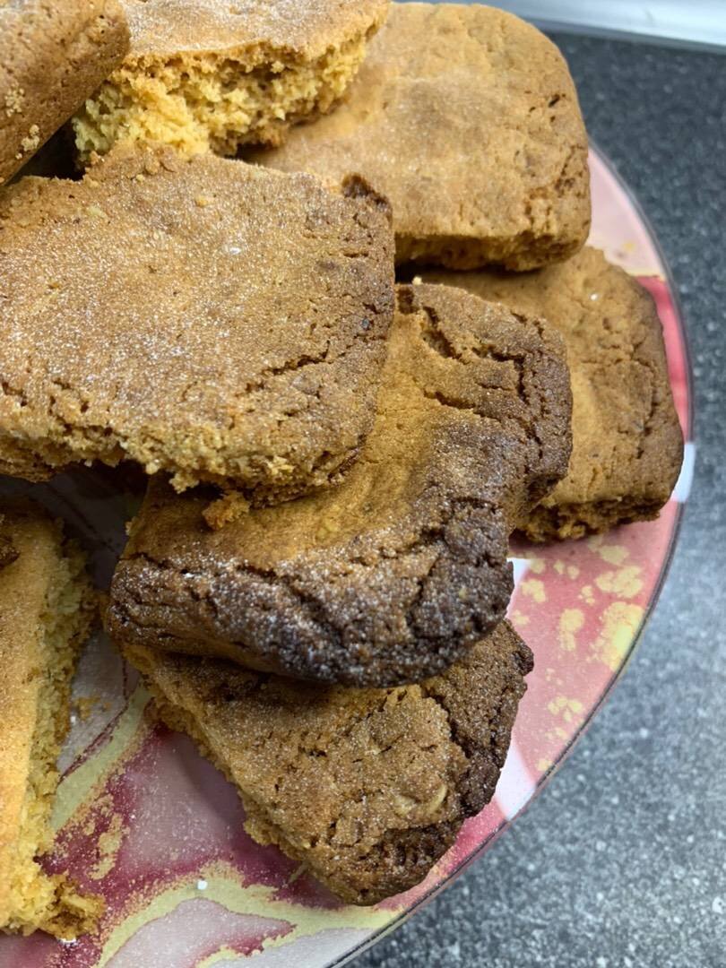 Мой муж очень любит овсяное печенье. Сегодня был в магазине и пожаловался на то, что не смог найти любимых вкуснях). Решила, что самое время попробовать их сделать самой 😉🍪. #овсяноепеченье #домашнеепеченье #печенье #выпечка Ингредиенты: Овсяные хлопья, Масло сливочное, Яйца, Сахара, Соли, Муки, Разрыхлитель Способ приготовления: Размельчите хлопья в блендере. Растопите масло, вмещайтесь в него сахар, соль. Затем, добавьте яйца, всыпьте хлопья, размешайте. В отдельной форме смешайте муку и разрыхлитель. Затем соедините муку с яичной массой. Вымащивайте тесто, оно должно получится густым, не прилипающим к рукам. Затем формируйте небольшие шарики и выкладывайте их на противен, заранее накрытый пергаментной бумагой. Шарики должны быть небольшими и желательно, расстояние между ними должно быть максимальным, насколько позволяет противен. У меня так не вышло😂 и все превратилось в одно целое печенье) Но это не страшно, печеньки потом легко ломаются и принимают свою форму👍😂. Разложив тест