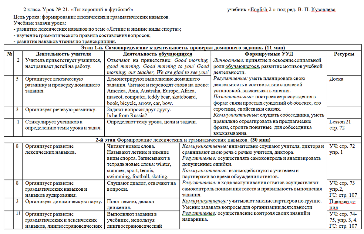2 класс. Урок № 21. «Ты хороший в футболе?»