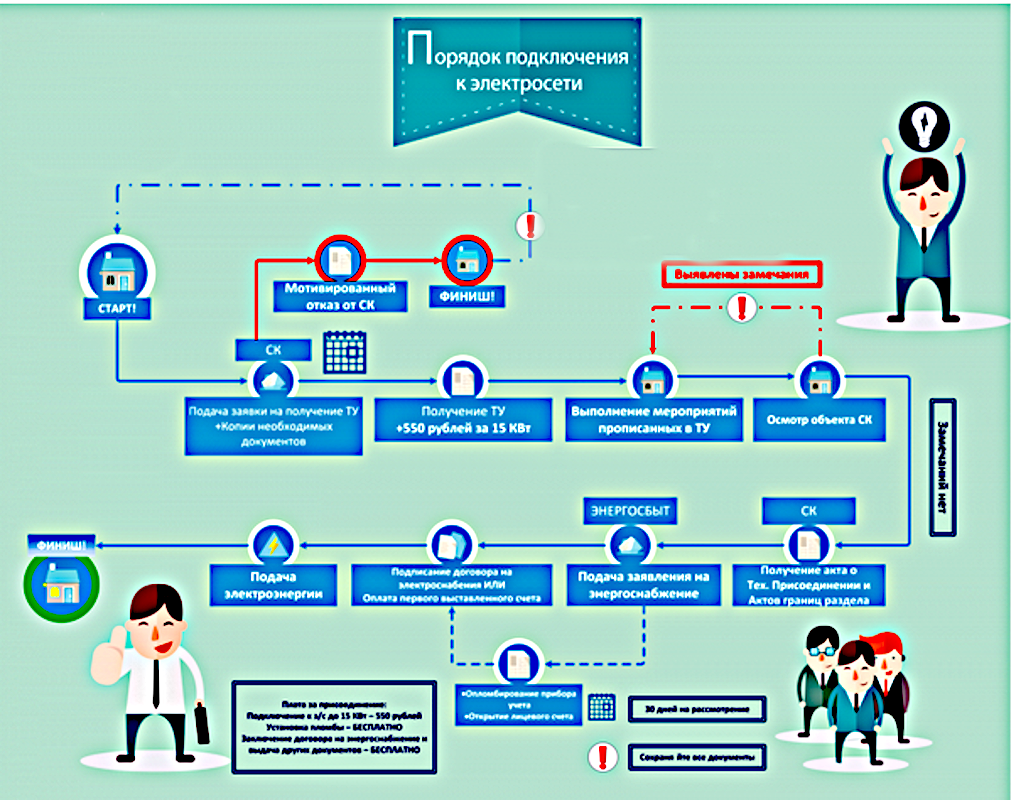 Подключение к электрическим сетям довольно непростая и длительная процедура для человека далекого от электроэнергетики. При правильной организации мероприятий срок подключения можно существенно ускорить. Заняться этой задачей лучше заблаговременно. Основная электросетевая организация на рынке оказания услуги по передаче электрической энергии в Новосибирской области АО "Региональные электрические сети" (АО "РЭС"), а энергосбытовое предприятие АО "Новосибирскэнергосбыт". Комплекс работ включает в себя оформление всех необходимые документов для технологического присоединения к электрическим сетям и электромонтажные работы: • подготовка полного комплекта документов, необходимого для подключения электричества; • план расположения энергопринимающего устройства; • перечень и мощность энергопринимающих устройств, которые могут быть присоединены к приборам противоаварийной автоматики; • заявление - заявка на подключение электричества; • получение технических условий от АО "РЭС"; • заключение
