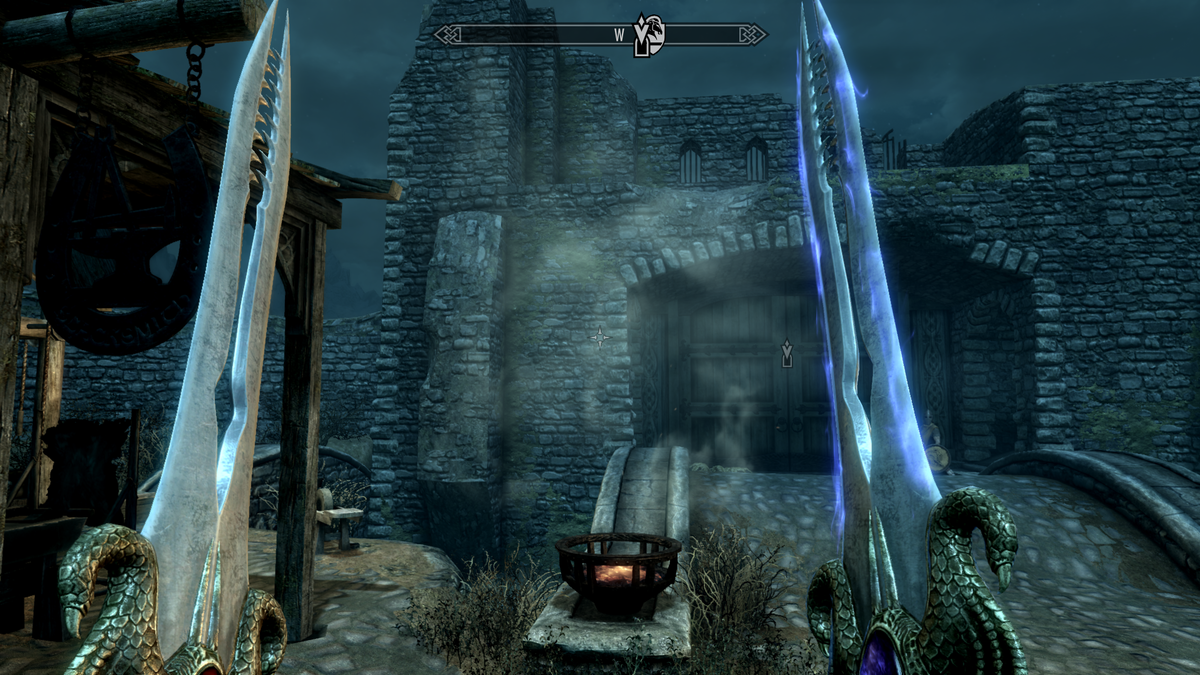 В статье о квесте "Разделенная душа" я упомянул об этом задании и вот сбегал по второй чудо-меч. Итак задание. Зуб Фалдара находится недалеко от Рифтена, собственно здесь: Эту крепость стоит посетить просто ради самой крепости. Ибо таких живодеров как там мало где встретишь в Скайриме. Эти сволочи держат в клетках волков и кормят их собаками, серьезно без шуток. А по ходу зачистки пещеры понимаешь что они и сами жрут собак(( в общем, достойны смерти! В одной из комнат обнаружиться что они еще и устраивают бои между четырехлапыми пушистиками. Там же найдем мертвого эльфа уморенного луком-пореем. В той же комнате находим записку, что отсылает на в еще одну пещеру. Пещера Сломанный Клык базируется неподалеку от Вайтрана. Сразу отмечу что там есть пара неприятных вампиров, поэтому на низких уровнях туда соваться не следует, да и сама пещерка достаточно стремная, хоть и небольшая. В конце пещеры в сундуке будет лежать награда - одноручный меч Жажда Крови. Крутая награда и не очень сложный к