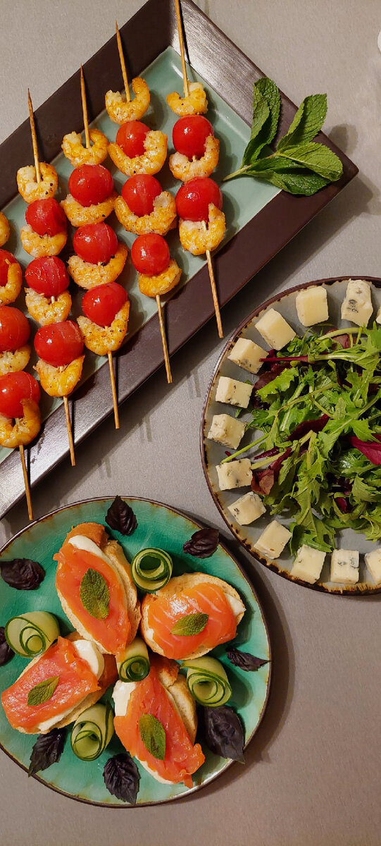 Всем привет, меня зовут Оля и я делюсь своими мыслями, рассказываю о себе, об увлечениях, поездках и вкусной еде. Еда - важный элемент нашей жизни. Многие сейчас перешли в режим правильного питания, кто-то просто экономит на еде, а некоторые настолько устают на работе, что готовят или просто и быстро, или сразу на несколько дней стряпают запасы, или вообще пользуются только доставкой готовых блюд. Но у каждого из нас бывает настроение приготовить дома что-то этакое самому, угостить близкого человека или всю семью, а может быть просто сделать приятное себе любимому. В такие моменты нападает особое вдохновение, хочется подать блюда красиво, выбрать продукты, которые в повседневной жизни кушаешь не так часто, взять бокал с любимым напитком и устроить релакс :) Так вот, у меня есть любимый набор блюд, которые послужат прекрасной закуской, при этом порадуют вкусом и лёгкостью, а еще они выглядят сочно и соблазнительно. Сейчас расскажу, это приготовить не сложно. Да, на вид по нынешним цена