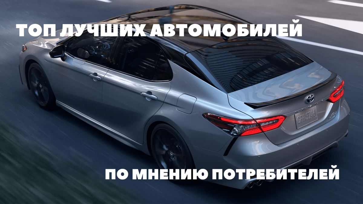 Toyota Prius Лучший гибрид в своем классе по мнению покупателей. Имеет достаточную надёжность, несмотря на сложную конструкцию. Стоимость около 2млн рублей. Tesla Model 3 Лучший электромобиль по мнению покупателей. Отличная управляемость, хорошее ускорение - около 5,5с до 100, за это и полюбили этот автомобиль. Стоимость около 3млн рублей. Toyota Camry Лучший среднеразмерный седан по мнению покупателей. Всеми любимая машина , которая является бизнес классом с удовлетворительной управляемостью , так же есть спортивные версии автомобиля Se и Xse для любителей более быстрой и агрессивной езды. Стоимость около 3млн рублей. Mazda CX-30 Лучший субкомпактный кроссовер по мнению потребителей. Выделяется среди своих конкурентов большей мощностью , так же небольшой и удобный для городских условий. Стоимость около 2млн рублей. Subaru Forester Лучший компактный кроссовер по мнению покупателей. Давно любимый многими кроссовер, который много лет лидирует на рынке за счёт полного привода и комфор