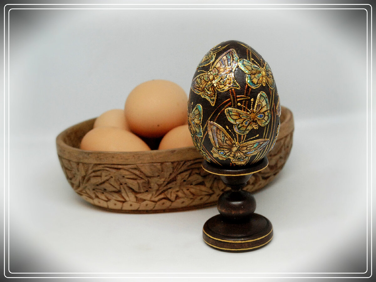 Никогда раньше такого не делала. Необычное коллекционное яйцо из дерева, соломки и перламутра