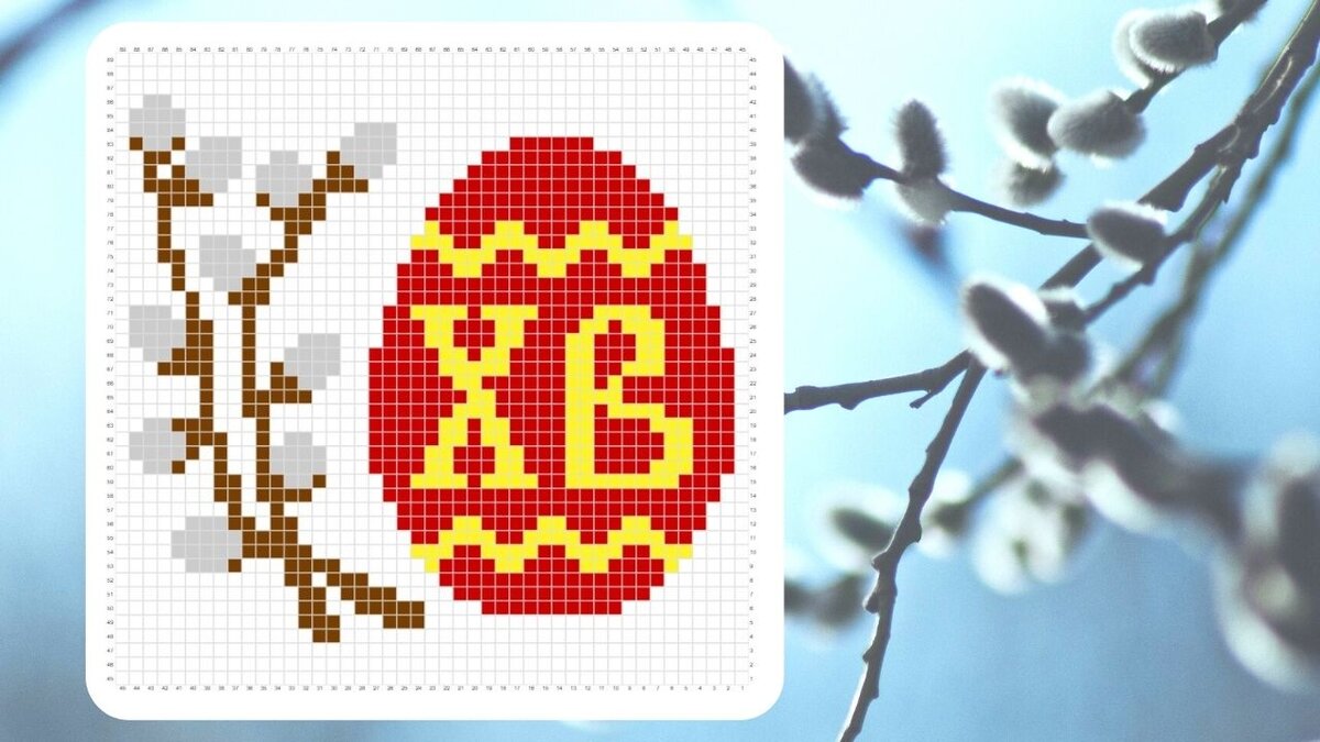 Продолжаю готовиться к Пасхе. Осталось связать еще парочку чехлов-мешочков для пасхальных яиц, корзиночку для пасхальных яиц, а еще хочу связать большую салфетку для стола с изображением пасхального яйца и веточек вербы.