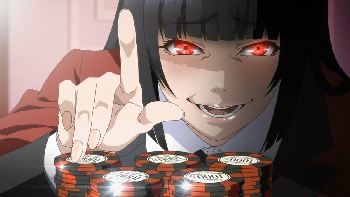 Я очень долго откладывал просмотр данного аниме, так как меня очень сильно смущал ажиотаж вокруг него, уж силишком сильно его форсили. Еще до просмотра подсознательно я уже формировал о нем не лучшее мнение, что конечно же не правильно, но чтобы переубедить себя нужно довольно много времени, а на это у меня ушел целый год. Но скажу сразу, я не остался недовольным, и все же рад что не стал смотреть на самом пик его популярности. КОНЦЕПТ Все события аниме разворачиваются в японской частной академии, где существует одна очень интересная традиция: все учащиеся (и не только они) после уроков не шуруют как это принято домой делать домашку, а играют в самые разнообразные азартные игры. Всем в академии правят деньги, удача, умение играть и конечно же азарт. Чем больше у тебя денег и побед, тем больше твое влияние и статус. Но если же ничем из этого ты не обладаешь, то в реалях данного учебного заведения ты всего лишь пыль, вплоть до того, что за списание долгов твоей судьбой могут распоряжать