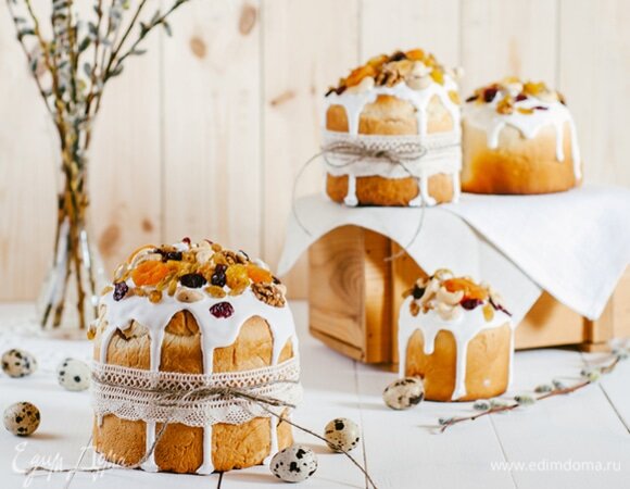 ПРОДУКТЫ: Мука - 4 стакана Молоко - 1 стакан Сахар - 1 стакан Масло сливочное - 100 г Дрожжи сухие активные - 11 г или свежие дрожжи - 50 г Яйца - 3 шт. Соль - 0,5 ч. ложки (по вкусу) ПРИГОТОВЛЕНИЕ: На минимальном огне растопить сливочное масло. Молоко подогреть. Дрожжи развести в теплом молоке. Добавить яйца. Затем растопленное масло, сахар, немного соли. Далее просеять и добавить муку. Все тщательно перемешать. Замесить тесто. Тесто разделить на 4-5 частей. Выложить тесто в смазанные маслом формы, заполнив их наполовину, и поставить в теплое место на 3-4 часа. За 10-15 минут до выпечки включить духовку. Формы поставить на среднюю полку. Выпекать быстрые куличи при 180 градусах до готовности (40 минут). Украсить по вкусу. Приятного аппетита и прекрасных праздников!
