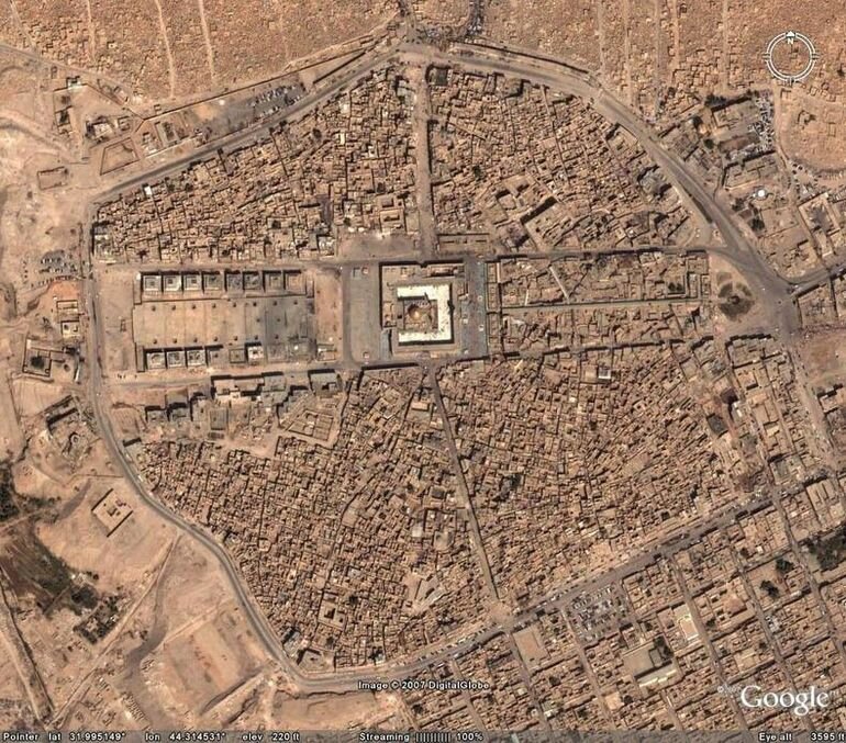 Оно находится в Ираке в городе Наджаф, который является священным городом для шиитов. И, по многим мнениям, является самым большим кладбищем не только в мусульманских странах, но и во всем мире. В интернете и различных публикациях про это место можно увидеть вот такую картинку, это вид сверху. Но это, на деле, лишь самая старая часть. На деле же это огромный район. Его площадь уже превышает 600 гектаров, там покоится более 5 миллионов человек. Тут хоронят не только иракских шиитов, но и, зачастую, шиитов из других стран. У меня есть знакомая, у которой там родственника из Ливана захоронили. Во время активной фазы боевых действий в Ираке хоронили по 200-250 человек в день. Сейчас, конечно, меньше. Тут две картинки, на второй спутниковый снимок. Хоронят тут уже 1400 лет. Кладбище внесено в предварительный список всемирного наследия ЮНЕСКО. Реальный такой Город мертвых, да? Есть просто одиночные могилы, есть своего рода склепы. Такое ощущение, что к большинству могил уже даже не подобрат