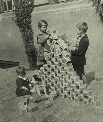 В это трудно поверить, но немцы действительно топили печку денежными купюрами. Более того, деньгами даже обклеивали стены. Причиной этому послужила гиперинфляция после Первой мировой войны (1920 - 1923 гг). В самые жестокие периоды ежемесячный уровень инфляции достигал 3,25 млрд. процентов, что эквивалентно удвоению цен каждые 49 часов. Гиперинфляция закончилась введением рентной марки в ноябре 1923 года. 1 Rentenmark была равна 1 000 000 000 000 бумажных марок. 4,20 Rentenmark равнялись одному доллару. Самой крупной купюрой была банкнота 100 000 000 000 000 папирмарок (100 000 млрд марок = Einhundert Billionen Марк — 100 триллионов марок) и стоимостью 100 рентных марок.