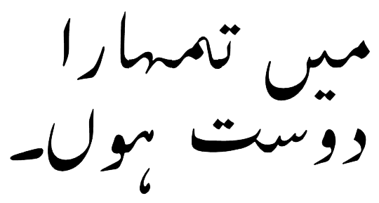 Я — твой друг. = (maiƞ tumhāra dost hūƞ.) میں تمہارا دوست ہوں۔