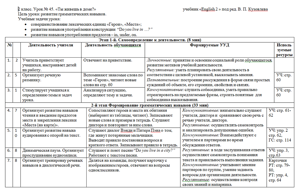 2 класс. Урок № 45. «Ты живешь в доме?»