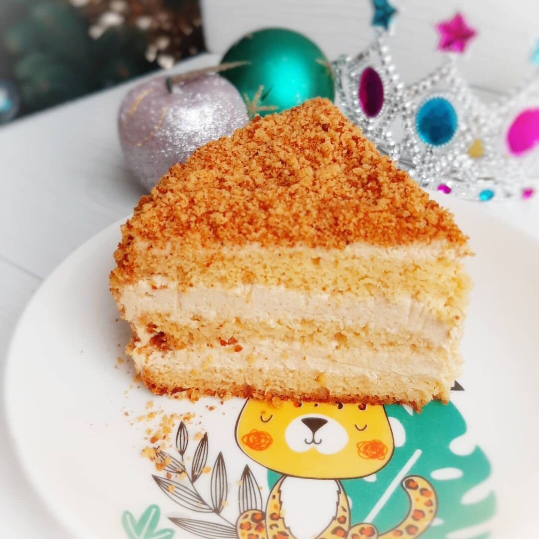 🍀КБЖУ на 100 г.: 200.8 ккал 11.4/6.8/23.2 Масса готового блюда: 908 г. 🍀Ингредиенты: ◽Для основы: Яйцо куриное - 4 шт. Мука кукурузная - 70 г. Мука рисовая - 70 г. Мёд - 60 г., у меня цветочный. Разрыхлитель - 1 ч.л. ◽Пропитка: Мёд - 10 г. Вода - 80 г. ◽Для крема: Рикотта - 200 г. Мягкий творог 5% - 300 г. Сухое обезжиренное молоко - 60 г. Подсластитель по вкусу, у меня 5 м.л. Prebiosweet. 🍀Приготовление: 🍎Яйца делим на белки и желтки. Белки взбиваем до крепких пиков с подсластителем. 🍏 Постепенно начинаем добавлять в белки желтки и перемешиваем, затем мёд, разрыхлитель, снова перемешиваем, просеиваем муку и замешиваем тесто. 🍎Перекладываем тесто в форму, у меня силиконовая 16 см. и убираем в духовку на 180° и 30 минут, выпекаем до сухой зубочистки. 🍏 Остужаем, срезаем немного верхушку, чтобы выровнять бисквит и нарезаем на 3 коржика. 🍎 Обрезки подсушиваем пару минут в духовке и измельчаем в блендере. 🍏 Сухое молоко, постоянно помешивая, обжариваем на сковороде до коричн