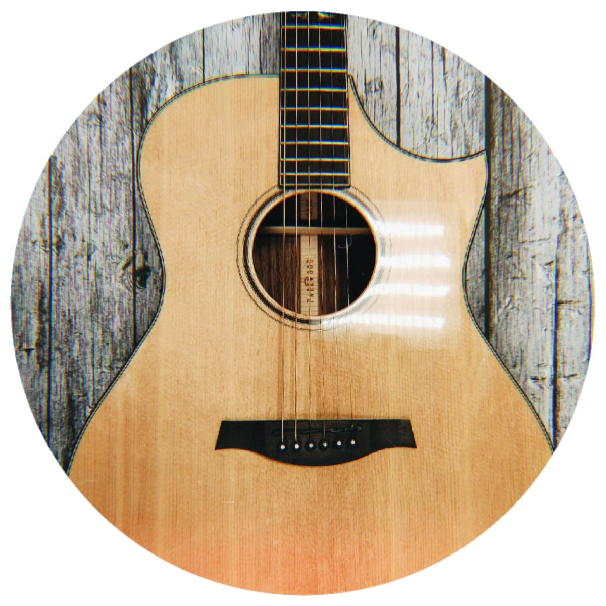 Верхняя дека- массив ели, обечайка и нижняя дека - индийский палисандр. За счет такого традиционного материала для изготовления гитар, мы получаем красивый, богатый, насыщенный звук, сбалансированный между высокими и низкими звуками, с прозрачными кристальными верхушками и плотным басом. Также форма Гранд-аудиториум является одной из самых объёмно звучащих (за счёт размера корпуса), но при этом элегантных и удобных. Плотно удерживает форму и защищает гитару от расклеиваний или ударов окантовка из пластика АБС.