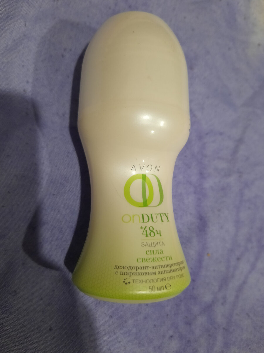 Добрый день, дорогие читатели! Раньше я была представителем Эйвон и активно пользовалась их косметикой и парфюмерией. Но уже давно прервала контракт, так что для заказа надо искать представителя, беру некоторые понравившиеся товары у своей знакомой, но видимся мы в последнее время редко. Так что накупаю, обычно, сразу помногу, чтобы лишний раз не беспокоиться. Дезодоранты у Эйвон мне нравились всегда, гораздо больше, чем представленные в косметических магазинах. Вот сегодня и расскажу об одном из них. Дезодорант-антиперспирант Avon с шариковым аппликатором On Duty "Сила свежести" Дезодорант представляет из себя обычной пластиковый флакон с шариковым аппликатором (в принципе стандартная упаковка для шариковых дезодорантов). Флакон довольно изящный, чем-то напоминает женскую талию, держать в руках такую форму очень удобно. Крышка закручивающаяся. Была защита от вскрытия в виде пленки. Не знаю, как вам, а для меня это очень важно, я человек брезгливый и не хотелось бы, чтобы таким интимн