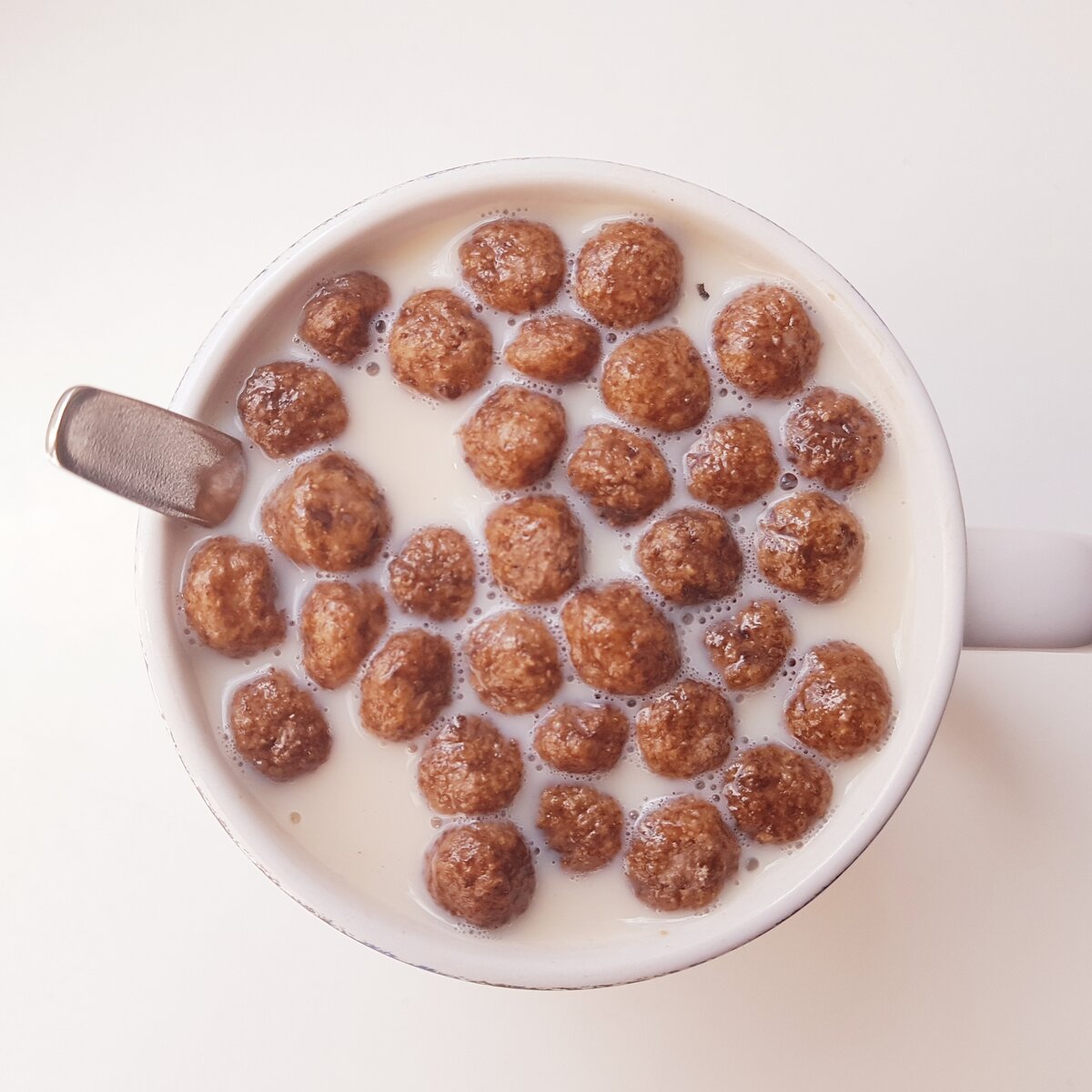 Я просто обожаю чай с молочком и эксперементируя как всегда по утру с мешанием вместе разных продуктов меня вдруг осенило. Конечно же! Шоколадные шарики!!! Они как раз у меня есть! Как всегда заварила чаек по следующей схеме: половина кружки кипяточка-> -> 2 ложки сахара, перемешать и только потом -> -> половина кружки холодного молочка -> -> и наконец сыпем сколько душе угодно шариков Шарики можно съедать за два три глотка чая и потом еще подсыпать. В итоге получается оооочень дешевый сытный завтрак. Шарики сейчас в дикси каком нибудь стоят около 30р за 200г, а молоко сами знаете. Пока в Мск самое дешевое в Ашане встречаю. 89 р за 1400мл, очень советую экономить и брать именно там. Хорошего вам дня, приключений и счастья;) Ваша Настюшка