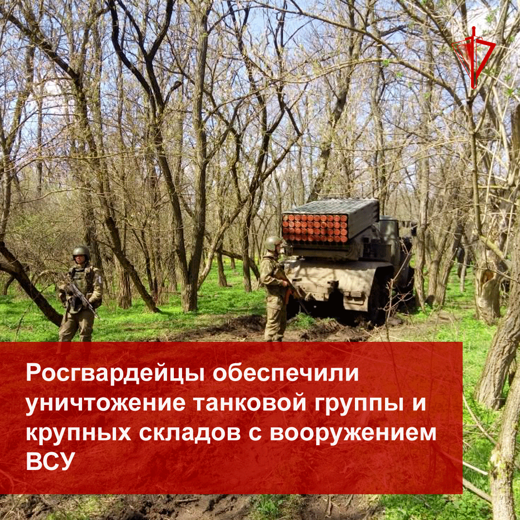 В результате совместного служебно-боевого применения подразделений Росгвардии и Минобороны уничтожены склады с ракетно-артиллерийским вооружением и танковая группа ВСУ. Кроме того, под прикрытием росгвардейцев российские артиллеристы успешно вели огонь по пунктам управления и огневым позициям, отдельным огневым средствам, бронетехнике и районам сосредоточения живой силы противника.