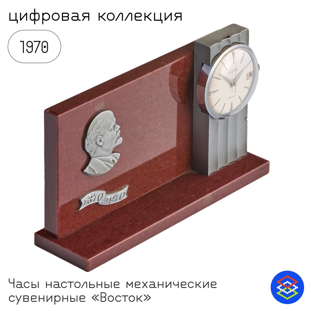 Они могли украсить квартиру или помочь отметить чьи-то карьерные достижения. Часы «Восток» из коллекции Политехнического музея были выпущены на Чистопольском часовом заводе к юбилейной дате — 100-летию со дня рождения вождя мирового пролетариата. Ленин учился в Казанском университете. Поэтому расположенный в Татарской АССР Чистопольский часовой завод просто обязан был отметить юбилейную дату выпуском подобного сувенира. Основной продукцией завода были механические наручные часы, которые с 1969 года производились под единой торговой маркой «Восток». Хотя представленные здесь сувенирные часы настольные, в них использован механизм для наручных часов. Вместо маятника в «Востоке» установлен баланс. Такие часы показывают точное время, даже если находятся в движении, а само устройство механизма становится более простым. Механизм часов оснащён пружинным двигателем, анкерным ходом и устройством стрелочной индикации. В онлайн-коллекции Политехнического музея можно увидеть второй вариант сувени