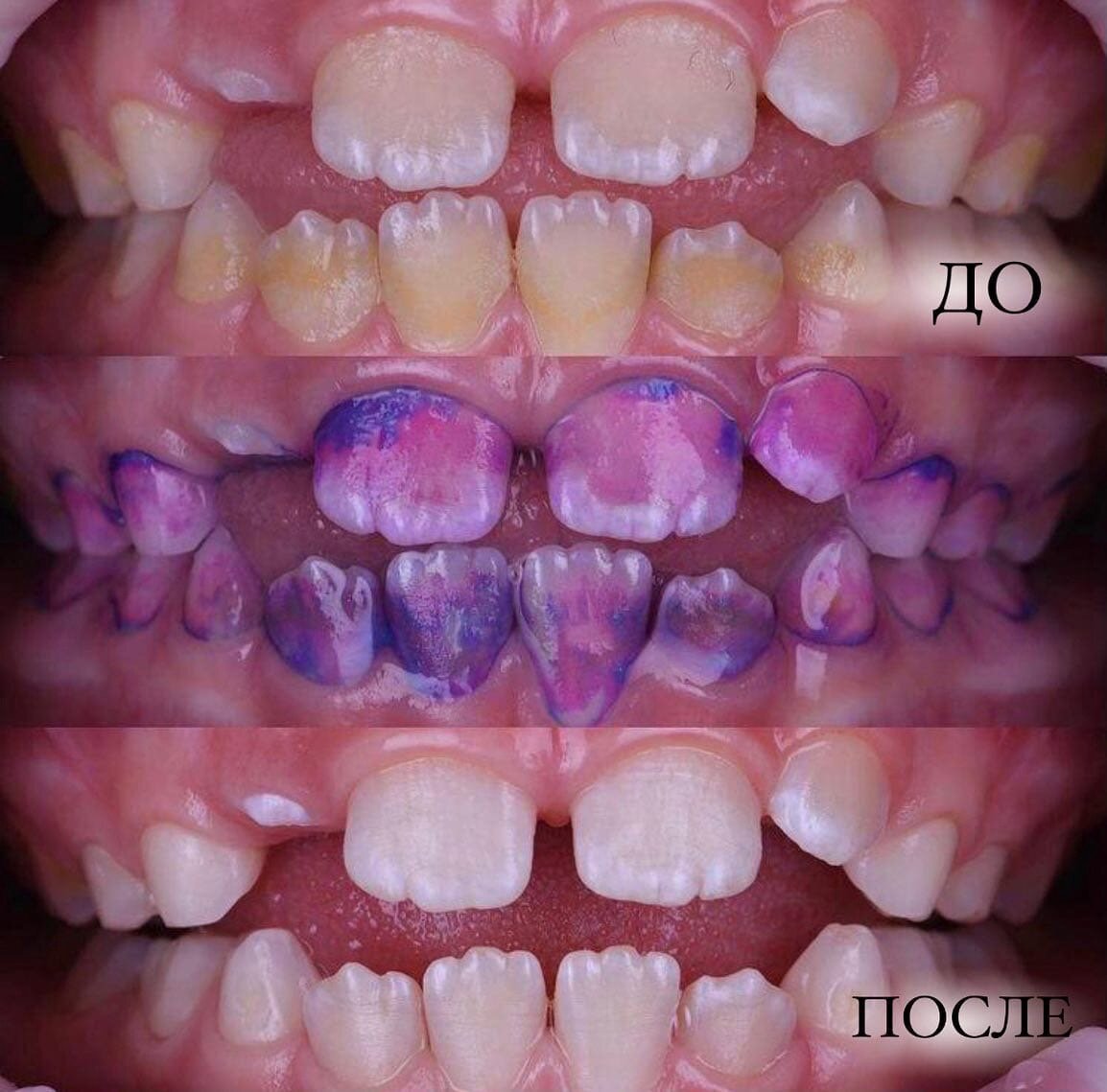 К нам на прием пришла девочка с жалобами на «некрасивый» цвет зубов. Мама девочки ввиду того, что видела ее каждый день, уже просто не замечала ничего необычного.