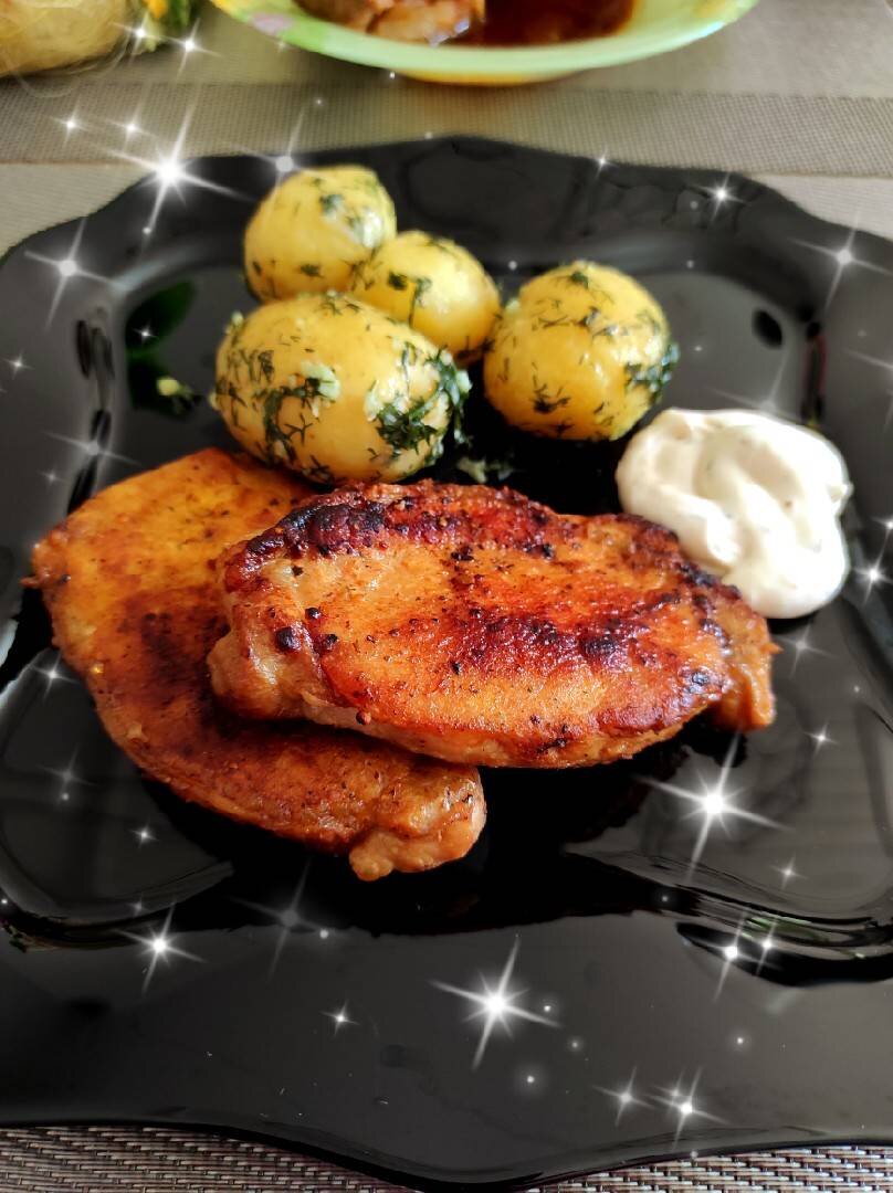 #пикник #академия #стейк #свинина Ингредиенты: - свинина вырезка, Приправа для мяса или шашлыка, - жидкий дым Способ приготовления: Подготовьте все продукты. Вырезку промыть под проточной водой, высушить бумажным полотенцем. Нарезать стейки толщиной 1.5 см. Приправа для шашлыков, насыпать в тарелку или на разделочную доску. Каждый стейк обмакнуть в приправу и сложить в ёмкость. Накрыть плёнкой и поставить в холодильник на пару часов, мариноваться. Стейки жарить на сухой сковороде с двух сторон по 1 минуте. Через минуту перевернуть стейки, потом снова через минуту перевернуть и так повторить три раза. Дать настояться стейкам. Стейки подавать горячими с гарниром. Приятного аппетита 😋