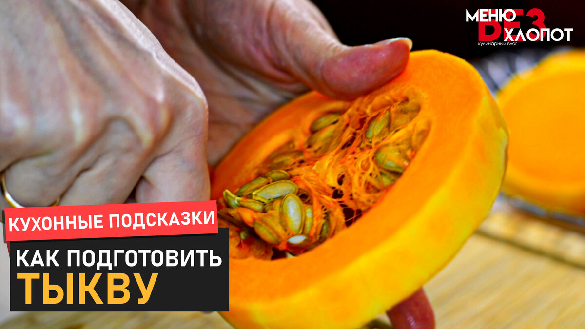 Тыква - очень полезный продукт. С ней можно готовить как основные, так и десертные блюда. Самым сложным в ее приготовлении для многих людей является нарезка. Пару полезных советов помогут Вам справиться с этой проблемой! Сначала хорошо ее моем, обрезаем хвостик и противоположную часть. Нарезаем на поперечные кольца, толщиной 2,5-3,5 см. Если тыква круглая, ее можно нарезать на дольками, как арбуз или пелюстками, как капусту (как нарезать капусту на пелюстки смотрите по ссылке). Корку каждого колечка чистим ножом, как обычные овощи. Кольца с семенами вычищаем сначала изнутри используя удобный нож, а затем чистим кожуру снаружи. Очищенную тыкву режем удобными кусками и натираем на терке или нарезаем произвольно ножом. На нашем канале Вы можете найти другие полезные совы, видео-рецепты и карточки с рецептами в Вашу копилочку. Достаточно в поиске YouTube ввести МЕНЮ БЕЗ ХЛОПОТ. Не забудьте подписаться, чтобы не пропустить новое видео и забрать карточку! Так Вы не только соберёте ко