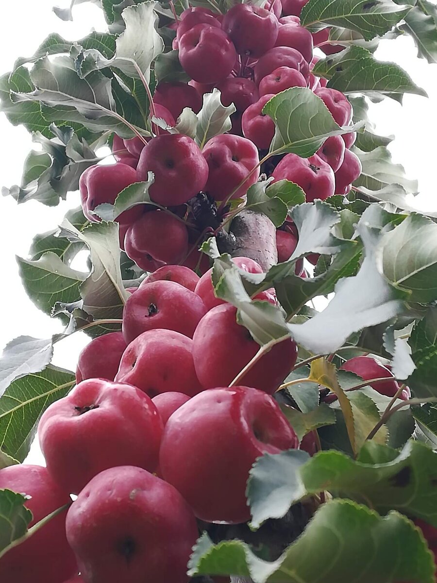 Следует пояснить, почему использую этот термин к сеянцам от сортов "колонн"? Дело в том, что многолетний опыт показывает, что сеянцы, отобранные из общей массы, как "колонны", так и растут, в один ствол, сохраняя такую форму кроны до момента плодоношения, то есть, до 5-ти летнего возраста. То есть, вначале, это действительно "колонны", по форме кроны. А вот потом, с ними происходят возрастные превращения. Их крона становится похожа на "пирамидальные" деревья. Такой формы, как у исходного сорта мутанта McIntosh Wijcik. То есть, превращаются в компакты и супер компакты. С разной степенью обрастания скелетными ветками, формирующими компактную пирамидальную крону. Вот и выходит, что такие сорта, производные от исходного сорта McIntosh Wijcik, так и сеянцы от них, по факту являются колонно-компактами.