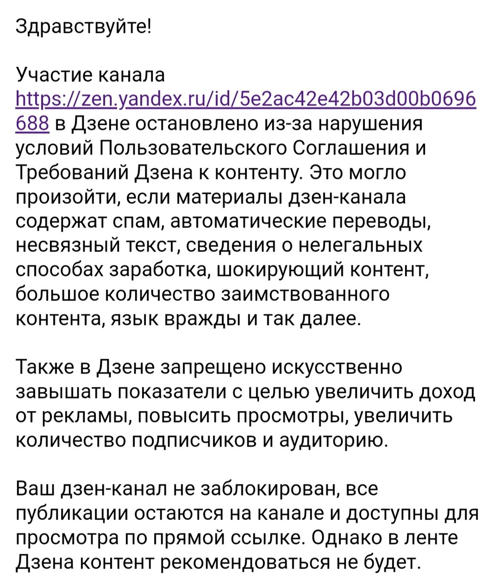 Возможно, это поможет кому-то ещё, кто также попадёт под маховик "системы". А также сохраню для себя, чтобы не забыть и чтобы всегда можно было апеллировать этими ответами. Начнем с того, что после подключения монетизации и премиальных показов 10000 + 18900 с другой платформы по программе поддержки блогеров, показы действительно увеличились. Заработок - ну не знаю, это скорее баловство, чем заработок, ну пусть. Но 2 дня назад - резко упали показы, буквально по 50-60 показов на пост. А монетизации вообще никакой не было последние 2 дня - по нулям. Я решила написать в поддержку, потому что странно все это. Сначала ответы были безрадостные: Забанен, но не до конца (как я, поняла). Стала уточнять, в чем именно проблема. Мне же надо ее решить. Я очень удивилась, что масла для волос и масляные духи могут каким-то образом относится к фарме, но решила все удалить. Заодно удалить вообще все посты, с помощью чего я восстанавливаю волосы. Написала об этом. А в ответ новое, ещё хуже. В общем приве
