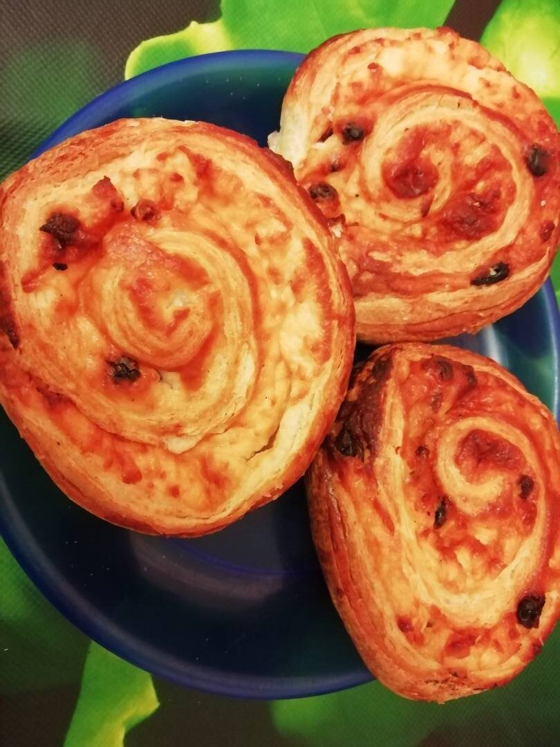Булочки из слоеного теста с творогом и изюмом