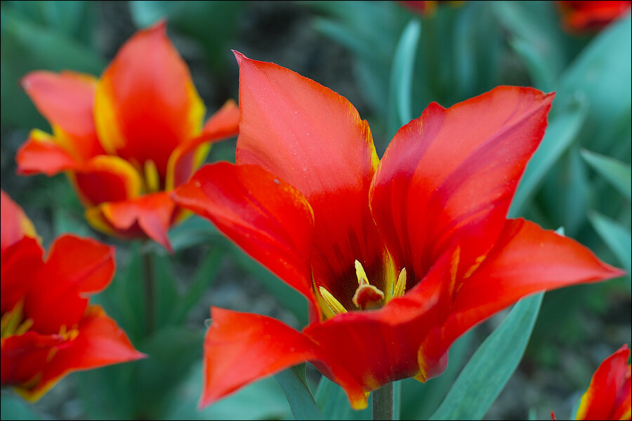 С ранней весны до глубокой осени Никитский сад дарит своим посетителям многочисленные выставки — цветочные балы тюльпанов, ирисов, лилейников, роз, клематисов, канн и хризантем! Нам дважды удалось побывать на фантастически красивых осенних балах хризантем, и вот уже второй раз мы приезжаем на тюльпаны! Правда, на сей раз мы застали лишь полонез — открытие, самые первые аккорды — но до чего же звонкими они оказались! До чего неожиданной была гамма — прелестная, изысканная, богатая! Самые первые и смелые посланцы тюльпаньего племени — коренастые, на коротеньких, как и положено первоцветам, стебельках — но тем волшебнее выглядели их выстрелившие будто прямо из земли цветки, крупные и нарядные. И нежные утончённые бутоны, и пёстрые колокольцы с острыми углами выгнутых лепестков, и пышные, похожие на пионы махровые красавцы… Прелюдия была исполнена на славу. И к концу апреля, наверное, уже выплеснулось на террасы Никиты полноводное тюльпановое море. Счастливцы, у которых Никитский ботаничес