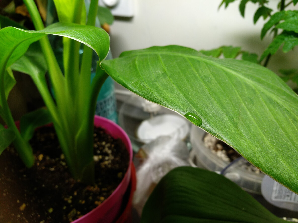#вестник Трех квадратов снова в виде статьи. Сначала моё открытие! Канна плачет! То ли залила, то ли что-то не так, но на листьях появились капли воды. Я такое уже видела, но тогда не поверила. А сейчас точно неоткуда было взяться, кроме как от самих листьев. Новые формы Посадила драгоценные орхидеи в банку. Анектохилус формазанус пока остался в своем стаканчике. А лудизию пристроила прямо в мох. У сортовых мини фиалок растут совершенно белые (пока) детки. Жду что дальше. Сорта пестролистные, но не настолько же! Эустома расти категорически не хочет. Даже дала боковой отросток, но вверх никак. Она поедет к моей подруге, может на стрессе от переезда что-то изменится. Неудачно полила и оказалось, сегмент листа замиокулькаса отрастил неплохой клубень. Но в рост не идёт. А второй фрагмент листа сансевиеры выдал детку под листом. Пришлось зубочисткой подпереть. Взошли оба эвкалипта, только их на фото плохо видно. Понемногу растут ранункулюсы из семян. Из стратифицировала в кокосовом суб