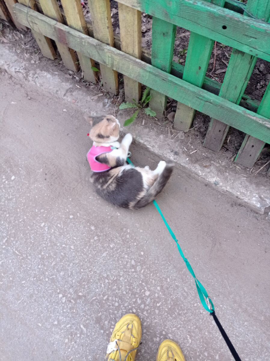 Прогулка с кошкой Мусей Много кто удивляется Она меня везде проводила У нас исчезли лавочки и она стала везде ходить Я ее остановила да соседнего двора непрошли. Ей нравится гулять #кошка #прогулка #домашний питомец #домашние животные #животные #забавные животные