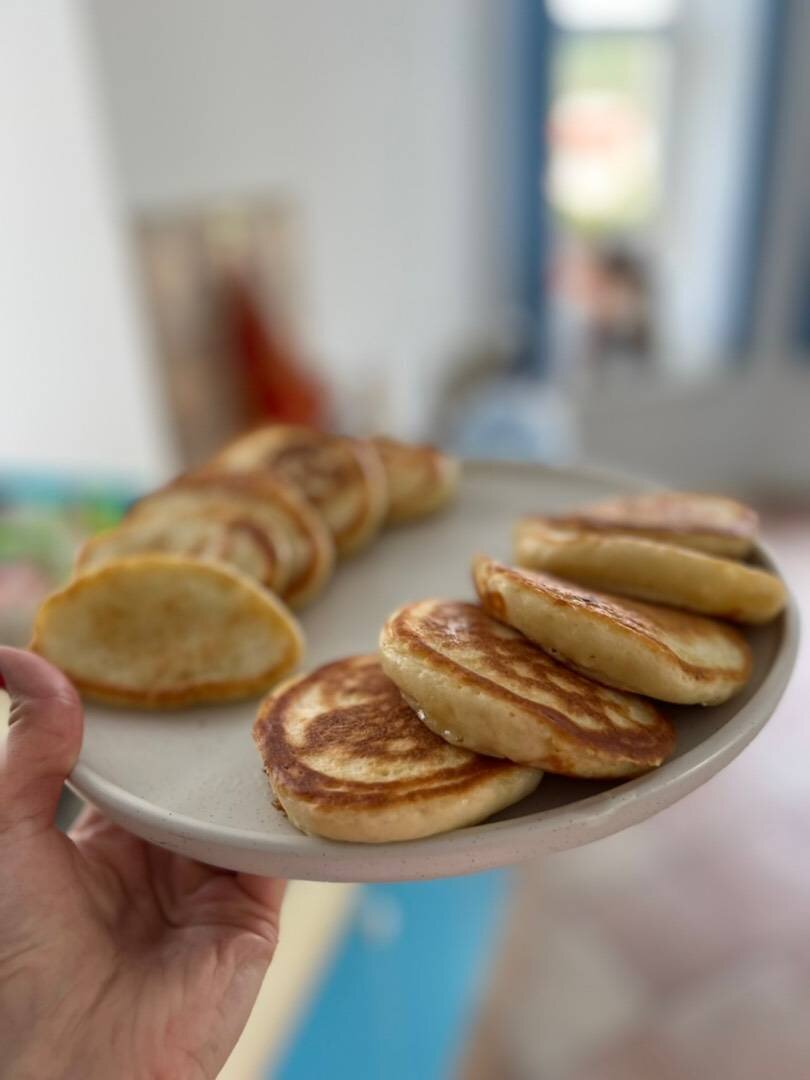 Ингредиенты: муки, кефира, сахара, яйцо, соли, соды, Оливковое масло для жарки Способ приготовления: Подготовить необходимые продукты. Кефир и яйцо заранее вынуть из холодильника. Смешать яйцо с сахаром и солью. Не взбивать, просто перемешать до растворения соли и сахара. В микроволновке слегка подогреть кефир. Но не перегреть, чтоб не было хлопьев. В яичную смесь, постоянно помешивая, постепенно вливать теплый кефир. В жидкую смесь небольшими порциями по 2 ст.л. вводить просеянную муку и вмешивать венчиком в одном направлении. Замесить густое однородное тесто. - Тесто должно лениво сползать с ложки. При необходимости добавьте кефир/муку. Можно добавить изюм. Добавить в тесто соду и хорошо перемешать. Дать тесту постоять 10-15 мин. не перемешивать больше. Набирать ложкой аккуратно с краю. Прогреть масло на сковороде. Выкладывать тесто по 1 ложке, оно должно сползать с передней части ложки. Жарить несколько минут на медленном огне под крышкой, затем перевернуть. Масло подливать через ра