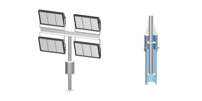 Какие бывают кронштейны для прожекторов При установке прожекторов на опору или мачту освещения никак не обойтись без кронштейнов крепления. В этом случае подобное изделие может монтироваться как оголовок опоры или на ее боковую поверхность. Наибольшее распространение в этой категории изделий получили модификации, называемые поперечинами, и конструкция типа «корона». Поперечины бывают следующих типов: На конструкции типа «корона» (выполняется в виде круга) предполагается размещение шести и более прожекторов. Крепление кронштейнов на опоре (мачте) освещения может быть выполнено несколькими способами: На разных предприятиях-изготовителях существуют целые серии кронштейнов для прожекторов, поэтому при выборе подобных конструкций следует внимательно ознакомиться с предложениями и подобрать нужную модель. Современные светодиодные прожекторы отличаются не только хорошими светотехническими характеристиками, но и малой массой, а также небольшими геометрическими размерами. Данные показатели поз