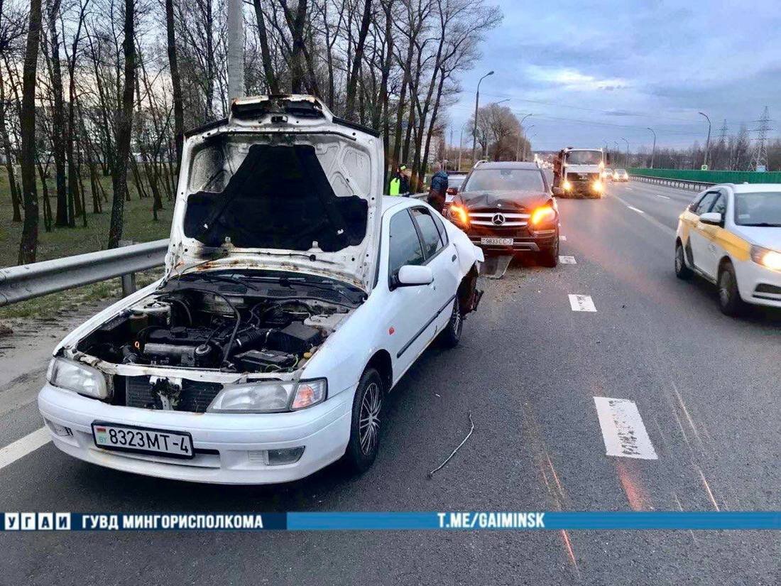 В ГАИ г. Минска проинформировали о ДТП, случившемся на МКАД в пятницу, 29 апреля 2022 года. Согласно предварительной информации, в 19:30 водитель автомобиля Mercedes врезался в стоящий в полосе разгона автомобиль Nissan. За рулем Mercedes находился 50-летний водитель, двигавшийся в направлении улицы Кижеватова со стороны Игуменского тракта по полосе разгона. Он в районе 19-го км внутреннего кольца МКАД совершил наезд на стоящий Nissan. К счастью, в ДТП никто не пострадал, ТС получили механические повреждения.