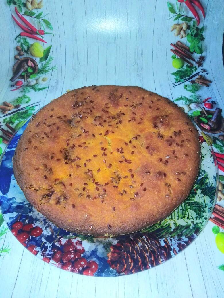 Залить оставшимся тестом, посыпать кунжутом или семенами льна и поставить в разогретую до 180 градусов духовку на 40 - 60 минут (ориентируйтесь по своей, готовность проверяем деревянной шпажкой).