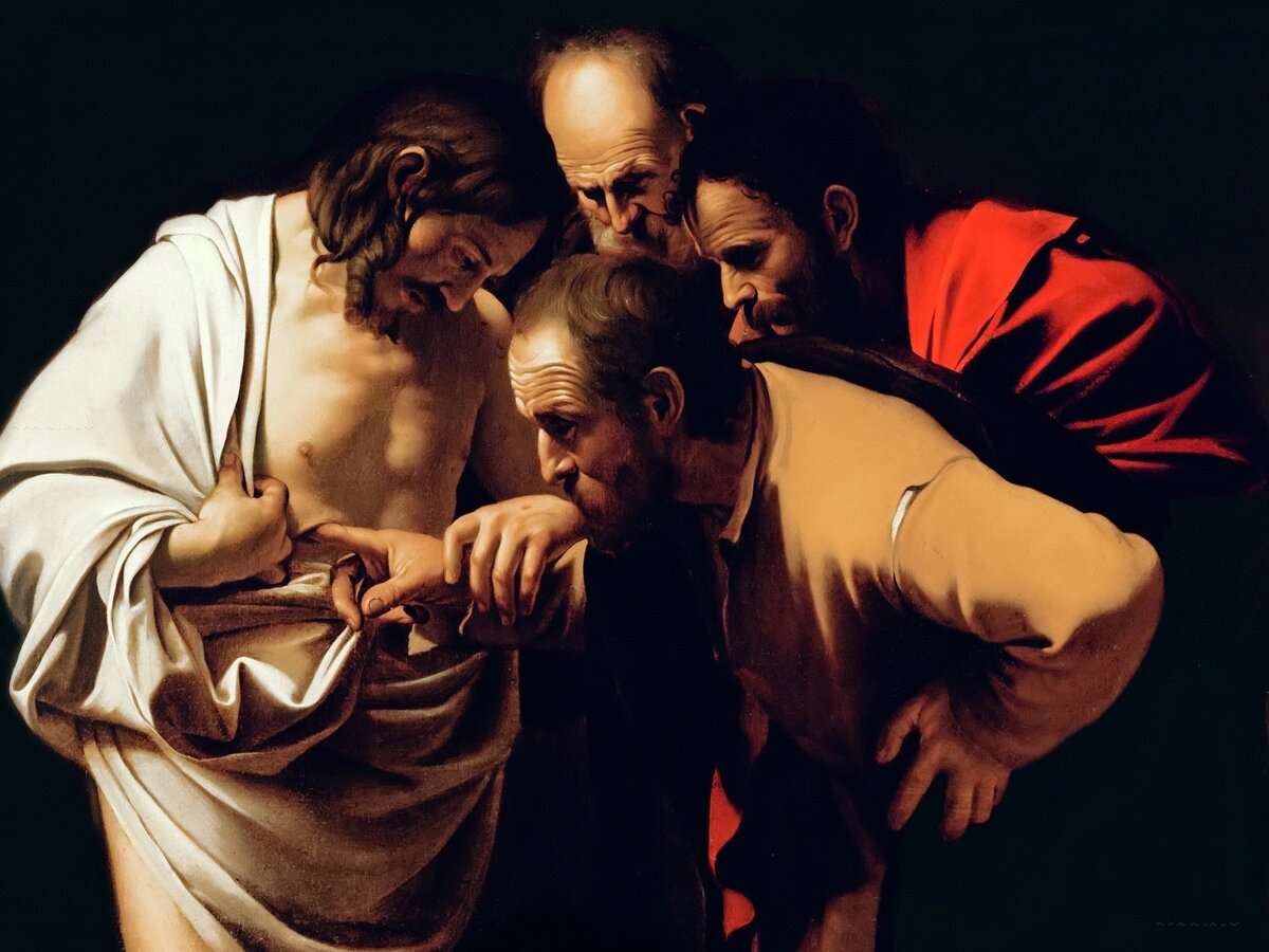 Тем не менее, это не мешало изображать этот момент в иконографии и в таких натуралистичных картинах, как у Караваджо, где апостол чуть ли не целиком погружает палец в отверстие от копья.