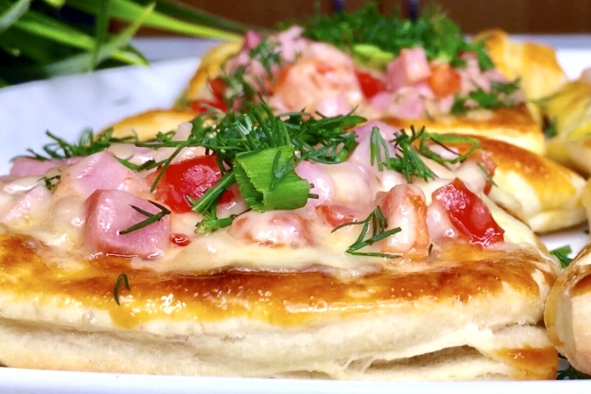 Вкусный перекус или завтрак? Легко. Мини-пиццы с ветчиной и помидорами