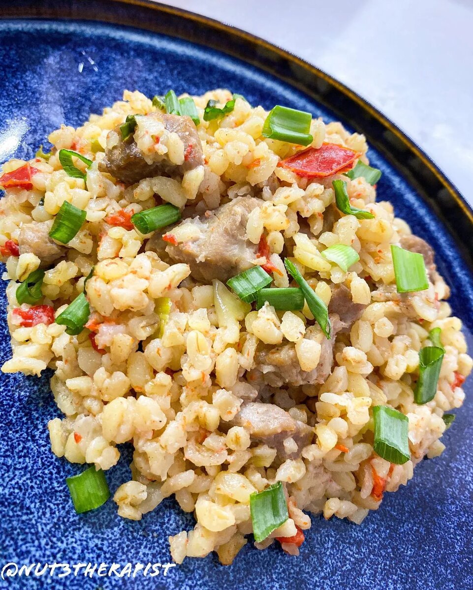 ⠀ Всем МИР! ТРУД! МАЙ! 😊 С праздником! Муки моего переезда почти закончены, уже очень скоро вернусь в привычный ритм и порадую вас новыми интересными статьями! А пока, решила поделится очень вкусным и интересным рецептом булгура 😋 Кто любит кокосовое молоко? 😉 Я - не фанат, но мне очень нравится сочетание кокосового молока во вторых блюдах… просто волшебно! Предлагаю и Вам попробовать ☺️ ✅Ингредиенты: 🔹индейка бедро - 500 гр 🔹булгур - 1,5 стакана 🔹лук, перец сладкий, зелень - по вкусу 🔹кокосовое молоко - 1,5 стакана 🔹вода - 1,5 стакана 🔹соль, перец, сухой чеснок - по вкусу ⠀ ✔️индейку нарезать и немного обжарить на сковороде со специями (можно на масле гхи/топленом/кокосовом) ⠀ ✔️к индейке добавить лук, перец сладкий мелконарезанные, обжариваем, затем высыпаем булгур и снова жарим около минуты ⠀ ✔️кокосовое молоко смешиваем с водой и заливаем булгур, смешиваем, добавляем специи. Здесь очень важно добавить сухой чеснок! Он даст просто невероятный аромат блюду 😋 ⠀ ✔️довод