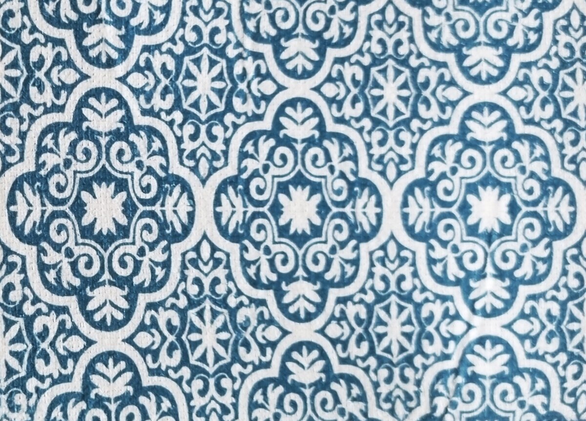 С одной стороны имеется приятный ненавязчивый орнамент, с другой стороны коврик однотонный.