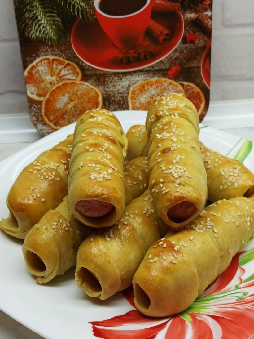 #академия #пикник Предлагаю рецепт очень быстрых в приготовлении сосисок в тесте на кефире 😋. Тесто будем готовить с содой . На мой взгляд, большой плюс рецепта в том, что заготовки не обжариваются в масле, а выпекаются в духовке, что значительно сокращает калорийность блюда 🤗. Ингредиенты: сосиски, кефира, мука пшенич, яйца, соды, сахара, соли, растит масло, кунжут Способ приготовления: Приготовить все необходимые ингредиенты. Подогрейте кефир на плите или в микроволновке около минуты, не подогревайте до горячего состояния! Кефир должен быть лишь слегка теплым. В теплый кефир вбейте 1 яйцо. Перемешайте. Добавьте соль, сахар и соду. Перемешайте. Затем просейте в кефир муку. Добавьте растительное масло и перемешайте тесто. Переложите тесто на рабочую поверхность и замесите мягкое, эластичное тесто. Тесто раскатайте в пласт. Нарежьте его полосками. Возьмите полоску теста и оберните её внахлёст вокруг сосиски, по всей длине. Подготовленные сосиски выложите на противень, выстеленный перг