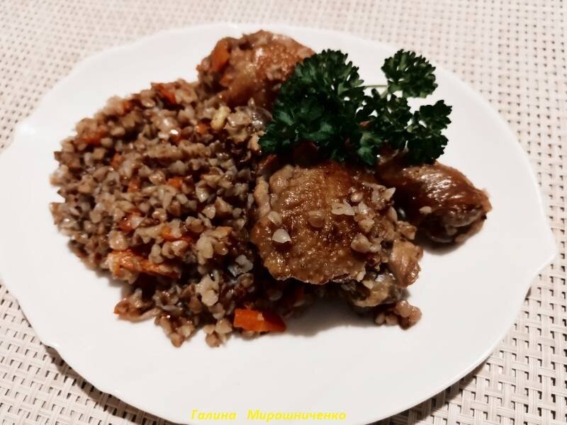 #академия Плов из гречки готовлю аналогично плову из риса. Ингредиенты: курицы, гречки, морковь, растительного масла, специи (молотый перец, барбарис) , соль, лавровый лист Способ приготовления: Курицу разрубить на куски и поджарить в раскаленном масле. Морковь нарезать кубиками, добавить к мясу и тушить с мясом почти до готовности. Мясо посолить, добавить специи и промытую гречку. Залить кипятком 1:2. Готовить на медленном огне. Как вода выкипит, плов перемешать и накрыть полотенцем на 10-15 минут. Приятного аппетита!